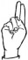 На ћирилици написано ДАРИО КЛЕПАЦ састоји се из 11 слова [?]. Исписано ћириличном једноручном азбуком за глувонеме: